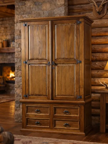 • El armario rústico de madera maciza de 2 puertas con cajones es la pieza perfecta para quienes buscan calidez, orden y carácter tradicional en el dormitorio. Inspirado en el mobiliario de casa rural, combina la robustez de la madera natural con herrajes metálicos de estilo forja, creando un mueble duradero que no pasa de moda y aporta sensación de hogar desde el primer vistazo.