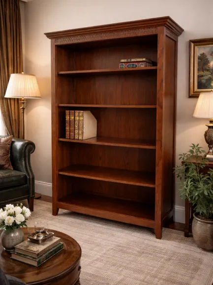 - Está compuesta por 5 estantes todos fabricados en madera maciza de fresno